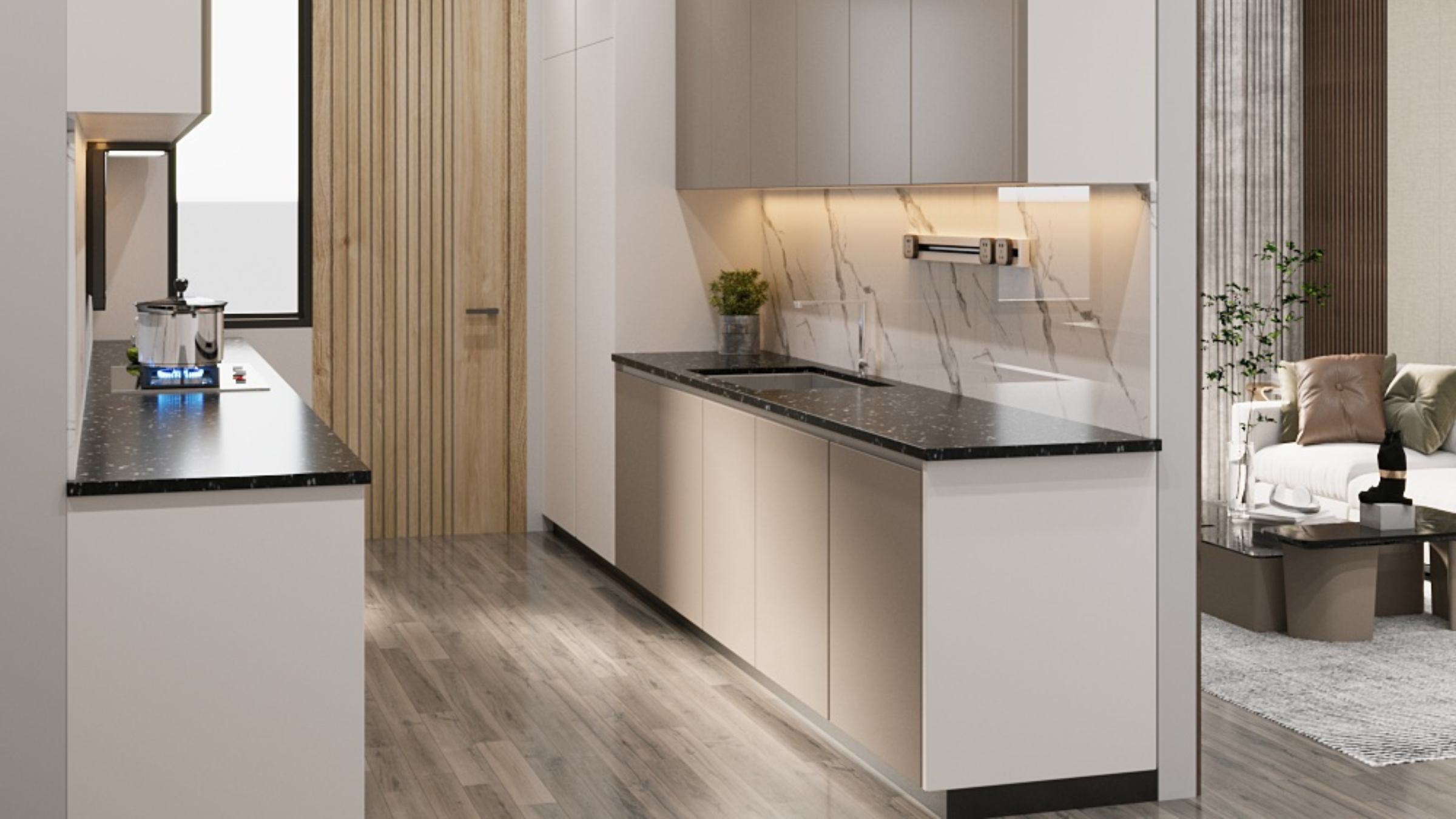 For Ocean View Residence, the interior design emphasises open views, lightness, and elegance. We selected light tones, coastal textures, and panoramic windows to maximize natural light and scenery. Accent materials, bespoke furnishings, and layered lighting bring depth and warmth while aligning with the seaside context.